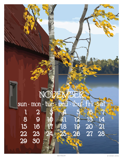 We are proud to bring you the fortieth edition of our calendar with brand-new artwork for the year 2026 by Dana Heacock. Available in an 11x14 poster size and 5x7 desktop or flip calendar.